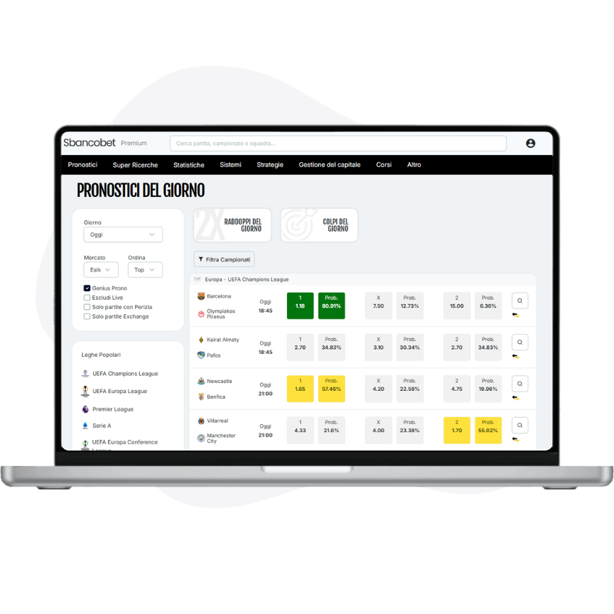 Sbancobet è il software scommesse più completo mai creato fino ad oggi per uno scommettitore. Adatto a tutti, sia esperti sia chi non ha mai scommesso.